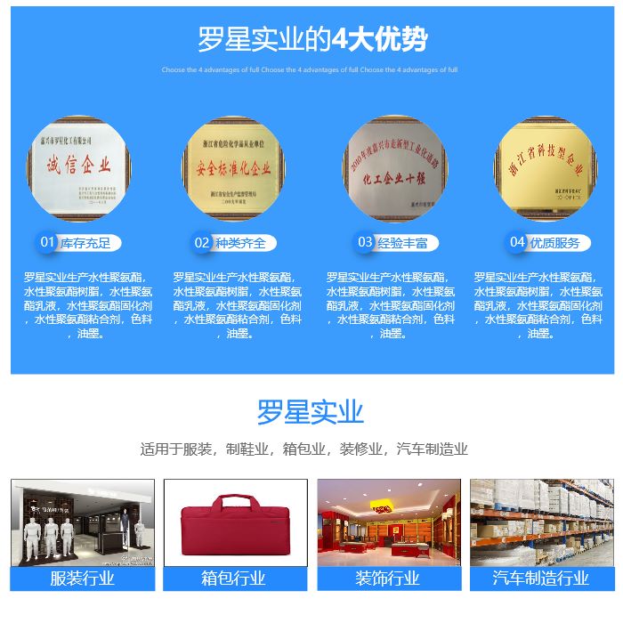 主營產(chǎn)品: 水性聚氨酯,皮革化工,皮革化料,水性樹脂,水性粘合劑